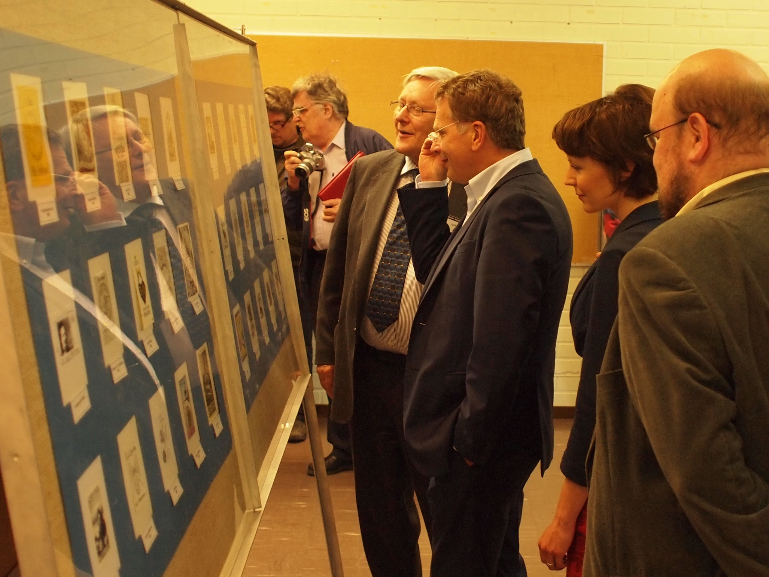 Presidenttipari tutustuu ex libris -näyttelyyn