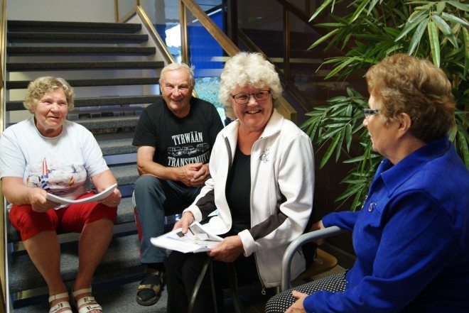 Kaija Helle, Anja Veko sekä Arvo ja Terttu Rintakoski olivat liikkeellä uteliaisuuttaan. Aikoinaan Lousajasta Jaatsin kulmille muuttanut Helle arveli tosin lähitulevaisuudessa muuttavansa vielä lähemmäs ydinkeskustan palveluja, joten asuntotarjontaan tutustuminen kiinnostaa.