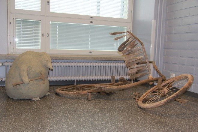 Pingviini ja pyörä löytyvät Lauttakylän lukiolta.
