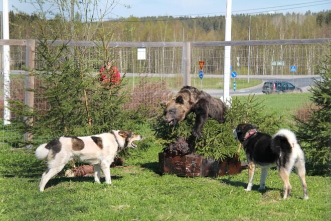 Konekarhu Kontio testaamassa koirien reaktioita.