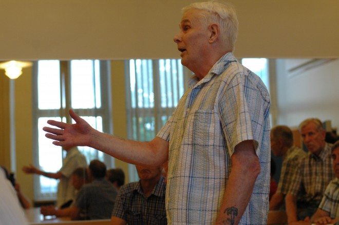 Anssi Ahtiainen nousee rohkeasti ylös. Hän saa kimmakkeen, kun Loimi-Hämeen Jätehuollon toimitusjohtaja Immo Sundholm toteaa, että Suomi on ainoa maa Euroopassa, jossa jätehuollossa on sopimusperusteisia kuljetuksia.