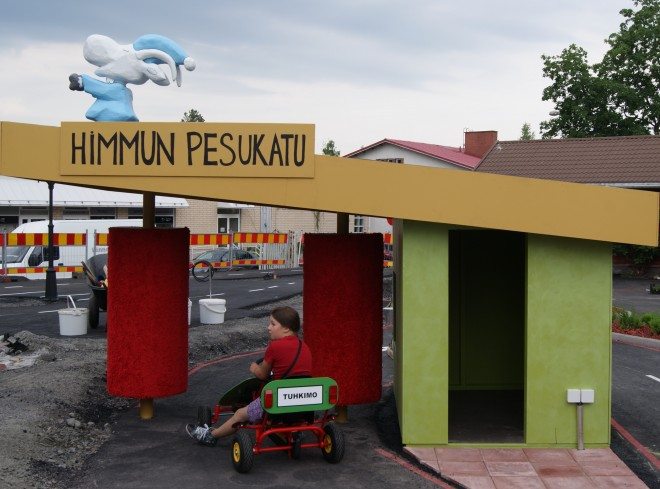 Herra Hakkaraisen talo Vammalassa saa kaivattua toiminnallista lisätilaa, kun talon takapihalle avataan huomenna torstaina Herra Hakkaraisen hurjan hauska autopiha. Kuten koko talon, myös autopihan esikuvana on käytetty kirjailija Mauri Kunnaksen tuotantoa. Tuttuja maisemia voi löytää Kunnaksen Hurjan hauskasta autokirjasta. Uuden alueen suunnittelusta on vastannut jälleen sisustusarkkitehti Leena Carelse. “Kun kuulin, että tontille suunnitellaan autopihaa, kysyin ensimmäisenä pojaltani, millainen siitä pitäisi tulla. Ensimmäiset luonnokset tekikin 13-vuotias Jasper”, Carelse paljastaa. Suunnittelija kertoo Mauri Kunnaksen pitävän 50-luvun tyylistä. Se on toiminut johtoajatuksena pihan rakennuksia suunniteltaessa. “Halusin tehdä pihasta 50-luvun pikku-Sastamalan.”