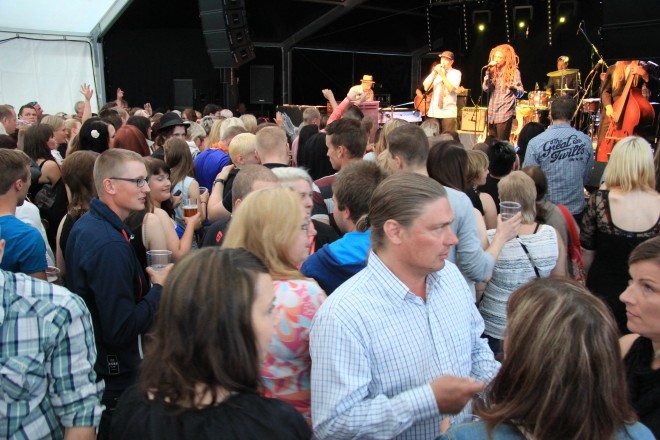 Saparofestareilla teltassa oli tiivis tunnelma. Saparoilla tarjottiin kahden päivän aikana yhteensä seitsemän sikaa. "Kolme ja puoli kumpanakin iltana. Murustakaan tuskin tulee jäämään, kyllä tämä tuoksu ja se mahtava makuelämys takaavat menekin", tiskin takaa arveltiin.Bilebändi Playa viihdytti festarikansaa molempina iltoina.Saparoteltta täyttyi lauantaina viimeistä istumapaikkaa myöden.Yleisössä oli tungosta, kun Elokuu pisti parastaan.