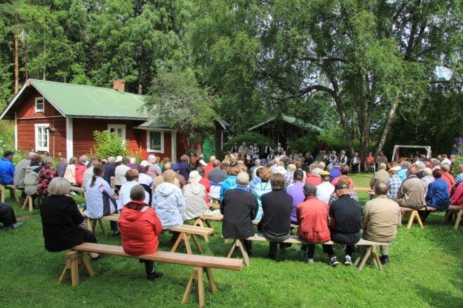 Kesäjuhlat keräsivät Peräniityn torpan pihan täyteen yleisöä.