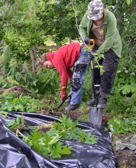 Jos tunnistat kasvin ensilehtiä laajalti, niin koko ruohikko kannattaa yhdellä iskulla peittää aumamuovilla. Kevytpeite tai ylipäänsä kudottu peitemalli ei estä jättiputkea puskemasta suojan läpi. Muovin alla kuumuus tappaa kasvin siemenpankin. Kärsivällisyyttä tarvitaan, sillä aikaa kasvin mitätöimiseen saattaa kulua viidestä kahdeksaan vuotta. Kitkettyjä kasvinosia voi nostella muovin päälle kuivamaan ja kuolemaan.