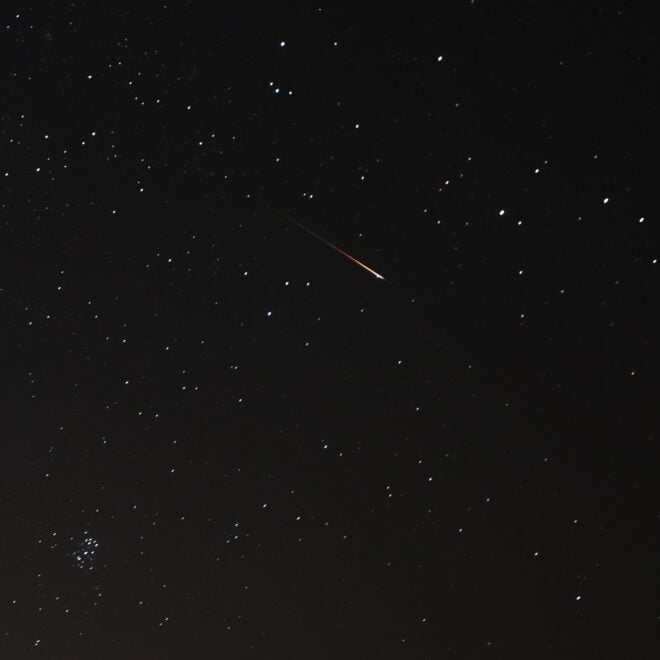 Perseidien meteoriparveen kuuluva tähdenlento vuonna 2012. Kuva: Jorma Koski.