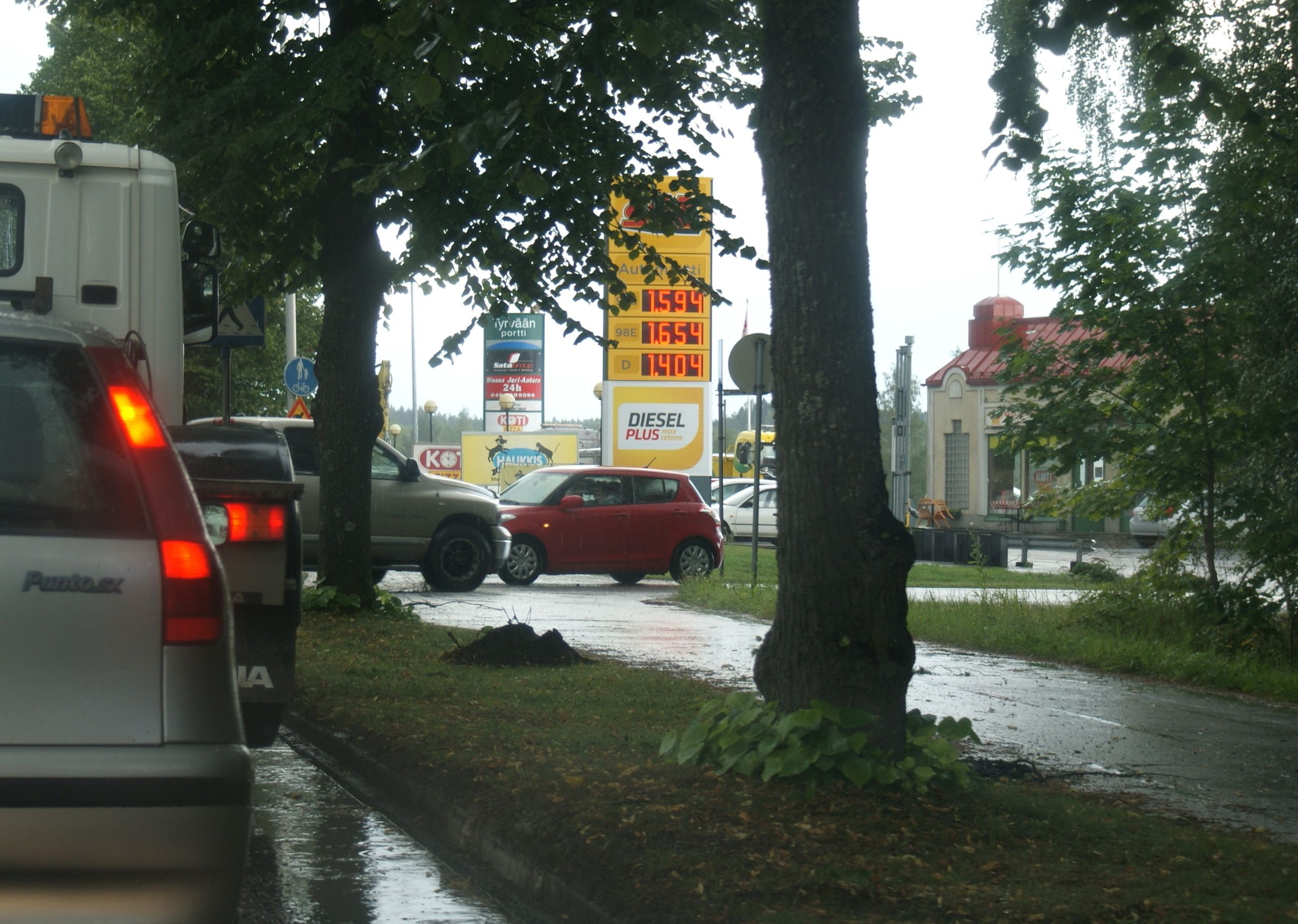 Liikenteen ohjaajat ohjasivat koko alkuviikon liikenteen jatkuvasti Shellin pihaan, ainakin keskustasta tultaessa.