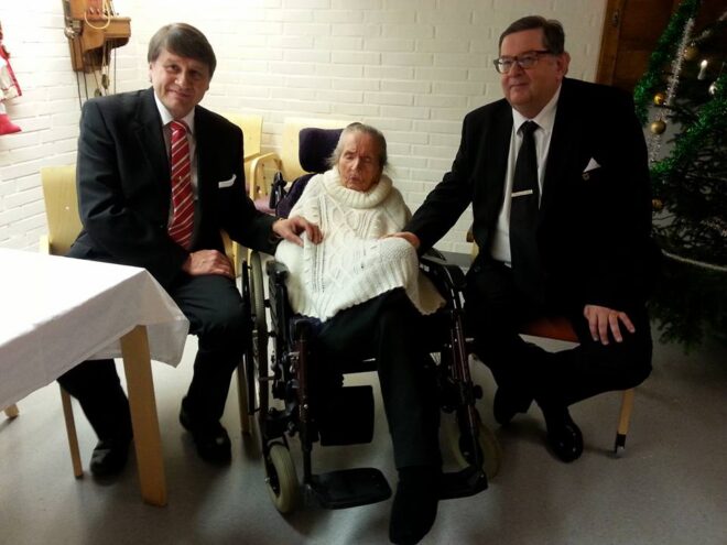 Juhlaan osallistuivat sankarin lisäksi hänen kolme poikaansa perheineen, Huittisten vanhusneuvoston edustajat, seurakunnan edustaja, Huittisten kaupunginjohtaja Jyrki Peltomaa, Satakunnan maakuntajohtaja Pertti Rajala, Suomi100 aluekoordinaattori Susanna Virkki ja Satakunnan vanhusneuvoston sihteeri, markkinointisihteeri Ulla Koivula.