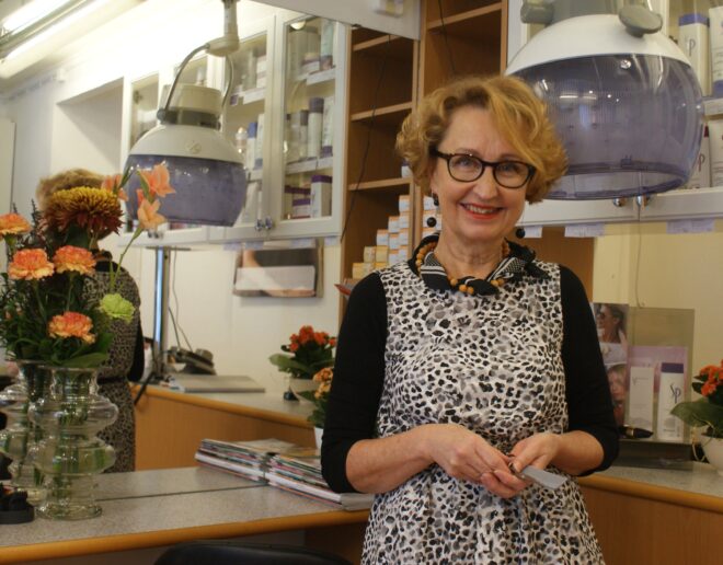 “Sieltä jäin äitiyslomalle 21-vuotiaana ja vuotta myöhemmin avasin oman kampaamoni, joka oli silloin Vammalan 14. parturi-kampaamo. Kuinkahan monta alan yritystä kaupungissa nyt on?”