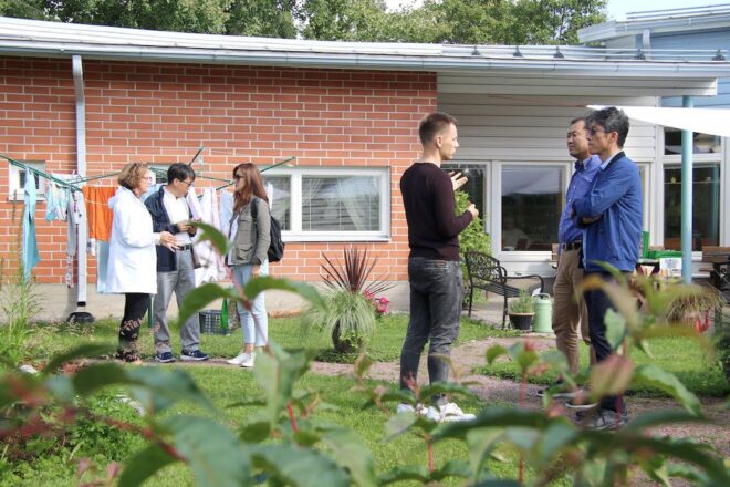 ”Jännittävää, että ulkomaalaiset vieraat kiinnittivät heti huomiota esimerkiksi puutarhan ellipsin muotoiseen polkuun, ellipsiä pidetään meilläkin muistisairaille tärkeänä muotona”, Härkälä hämmästelee.