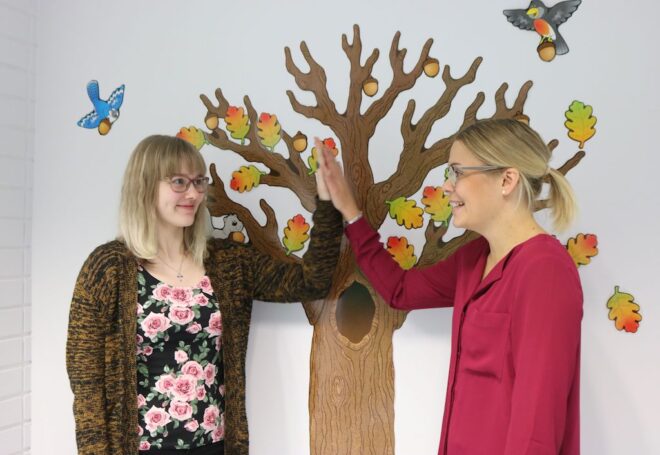 ”Lisäksi jaossa on perhepalveluverkoston ämpäreitä kahdessa eri koossa, jotta lapset ja aikuiset saavat omansa”, kaksikko nauraa.