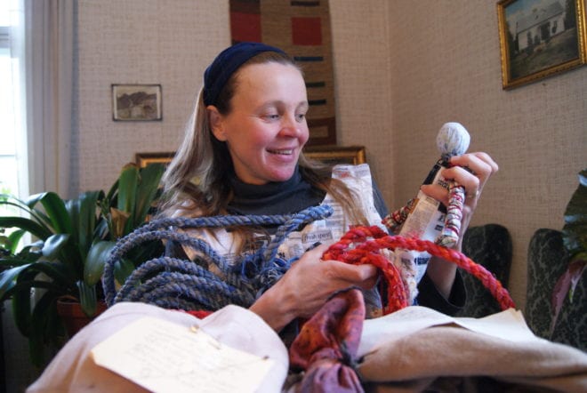 “Uusiin kirkkotekstiileihin kuuluu näiden lisäksi myös kaksi kalkkiliinaa ja stola”, kertoo taiteilija.