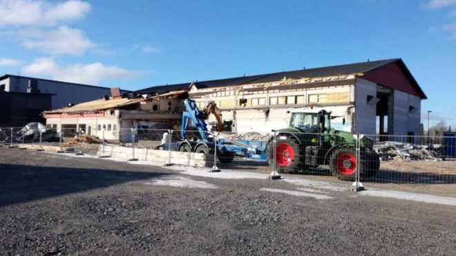 ”Purkutyö on varsin rajua, kun kolme kaivinkonetta laittaa rakennusta matalaksi”, Suuniitty sanoo.