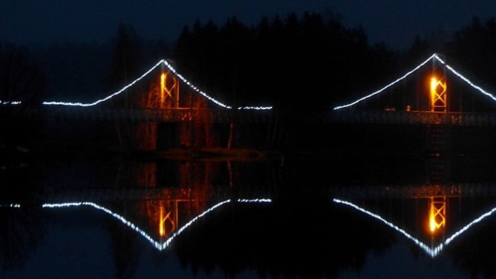 Riippusilta valaistuksessaan.