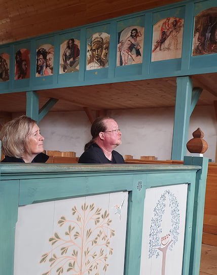 ”Olen nuorena arkkitehtiopiskelijana viettänyt viikon akvarellileirillä Pyhän Olavin kirkkoa maalaten. Asuimme leirintäalueella ja rakastuimme kirkkoon ja maisemaan koko porukka. Sen myöhempi palo olikin kauhea järkytys myös itselleni”, hän muistelee.