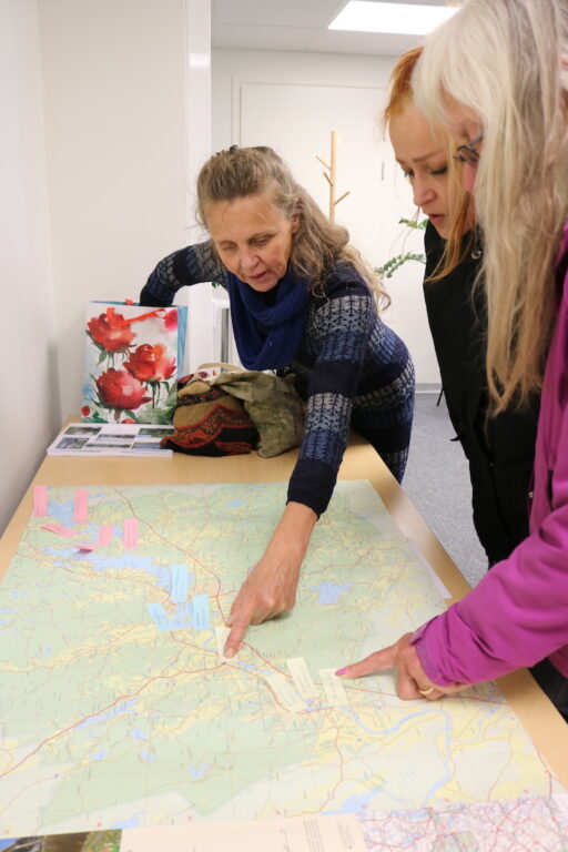 Outileena Uotila esitteli Anu ja Maire Rotstenille kartalta Sastamalan siltojen paikkoja.