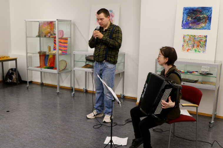 Minä olen taide -hankkeessa oli mukana kuusi toimintakeskuksen asiakasta, jotka kokoontuivat Vehkaperän ja Pirttimäen johdolla musiikin ja kuvataiteen äärelle viikoittain.