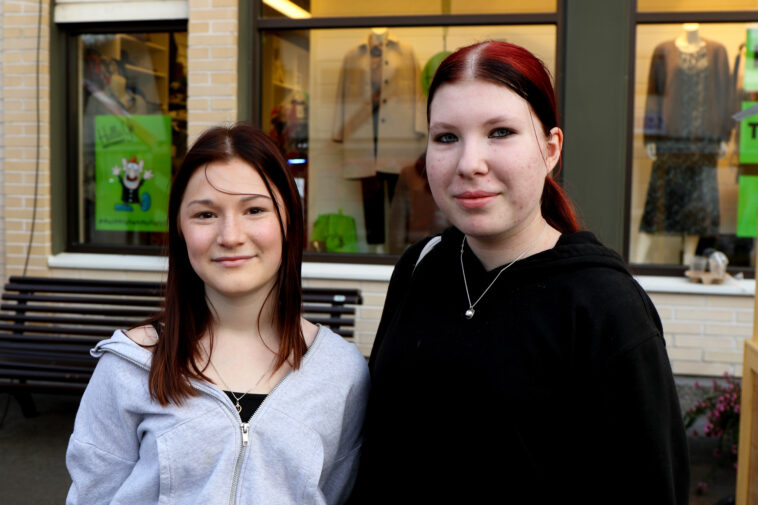 Elsa Heikkinen ja Netta Dahl kehuvat Huittisten valikoimaa. Kaupungista löytyy nuorille kaikki tarvittava, vain vaateostoksille pitää joskus suunnata muualle.