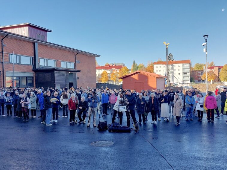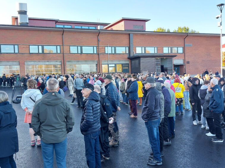 Ennen tutustumista Sylvään koulun uudisrakennukseen oli sen avajaisia vietetty juhlallisin menoin Rautavedenkadun puoleisella sisäpihalla.