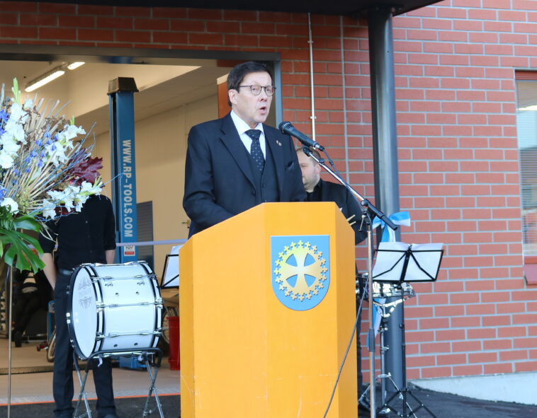 Taitotalon pääurakoitsijan, Astora Rakennus Oy:n toimitusjohtaja Mika Rajamäki kiitteli koulun ja kaupungin edustajia toimivasta yhteistyöstä.