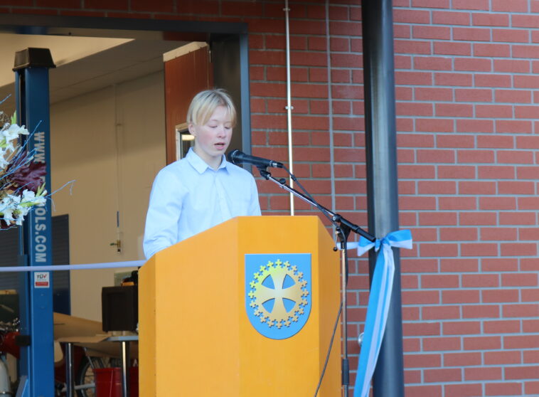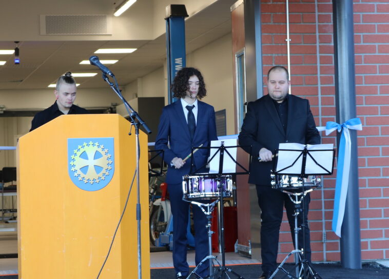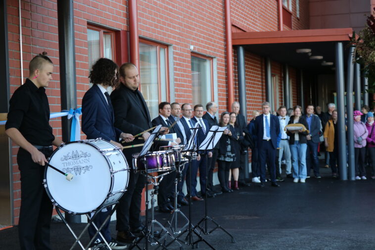 Koulun oppilaskunnan puheenjohtaja Tuomas Laaninen sai juhlapuheen pitämisen lisäksi kunnian suorittaa virallisen nauhanleikkuun.