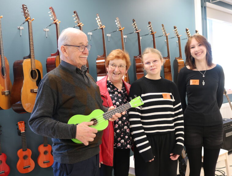 Arvo ja Leena Heino tutustuivat Taitotaloon koulun oppilaiden opastuksella. Yhdeksäsluokkalaiset Iida Innilä ja Helmi Lepistö saivat Heinoilta kehut. “Nämä nuoret osaavat niin hienosti ja asiantuntevasti esitellä tiloja, laitteita ja välineitä”, he kiittelivät. “Oppaille kymmenen pistettä ja papukaijamerkki!” Musiikkiluokassa Arvo innostui kokeilemaan ukulelea ja bongorumpuja. Arvo Heino musisoi. Teppo Lindholm, Heimo Kuukka ja Petri Tommila ihmettelivät uusia teknisen työn tiloja. “Täällä on huippulaitteita.” Tommila kertoi olevansa ensimmäistä ikäluokkaa, joka on aikoinaan Sylvään koulua käynyt. “Kovin on eri näköistä nyt”, hän tuumi. Sastamalan Opiston kursseilla muun muassa puutöitä harrastavaa Lindholmia uudet tilat ja koneet innostivat. “Odotan jo, että päästään ensi vuonna tänne”, hän totesi ja kannusti Kuukkaa ja Tommilaa myös ilmoittautumaan opiston kursseille. Sylvään koulun entinen teknisen työn opettaja Sulo Kylliäinen sekä pankkialalla työuransa tehnyt Veikko Junnila tutkivat uusia kädentaitojen tiloja. “Onhan tämä erilaista kuin silloin joskus. Vielä kun pääsisi näkemään, miten nykyään opetetaan ja miten näitä kaikkia koneita käytetään”, Kylliäinen tuumaili. Sulo Kylliäisen entinen oppilas ja nykyinen teknisen työn opettaja Ari Kuusela tuli kuin tilauksesta paikalle esittelemään pyörösahaa. Hän esitelmöi innokkaille kuulijoille myös CNC-koneista, tiloista löytyi jo muun muassa laser-leikkuri ja tulossa on vielä jyrsin. Sylvään koulun aulassa oli tarjolla tietoa muun muassa Sastamalan vesihuollosta, tonteista ja uimahallista. Liikuntapaikkamestari Jari Aho (toinen vasemmalta) ja tekninen johtaja Kimmo Toukoniemi (oikealla) vastailivat Sinikka Nurmisen ja Liisa Talolan (ladyt keskellä) kysymyksiin. Nurmista ja Talolaa kiinnosti uimahallihankkeen aikataulu. Talola toivoi uimakoulua aikuisillekin. “Hienolta se näyttää näissä kuvissa. On sitä uimahallia niin kauan odotettu, että vielä jaksaa vähän aikaa.” Aho vahvisti naisten arvailut ensimmäisten uimahallisuunnitelmien tekemisestä. “Kyllä se vuosi oli 1968.” Kaupungin edustajilta kyseltiin myös kuvia uimahallin saunatiloista. Ensi vuoden Sastamala-synttäreillä niitäkin on varmasti katsottavana, viranhaltijat lupailivat. Eijaliisa Suominen (keskellä t-paidassa) tarjoili synttäri- ja avajaisvieraille Heinon Leipomon mansikkaleivoksia. Kahvikin maistui. “Leivoksia on tuhat kappaletta. Mahtaako se riittää, kun nämä kemut jatkuvat iltakuuteen”, Suominen mietti. Näistäkin riitti Sylväällä puhetta. Sastamalan Veden etäluettavat vesimittarit sekä maanalaista silmäiltävää: vanhaa ja uutta vesiputkea. “Onhan noissa putkissa melkoinen ero. Vanha on hiljattain kaivettu ylös Kyyhkysenkadulta”, kertoi Sastamalan Veden verkostopäällikkö Marko Naskali.Taitotalon avajaisjuhlallisuudet kiinnostivat. Veeti Friman, Kasperi Nieminen ja Ilmari Niemi soittivat avajaisissa juhlamarssin.