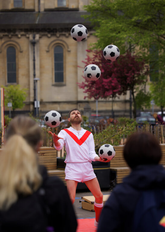 Simon Llwellyn ällistyttää sirkustaidoillaan.