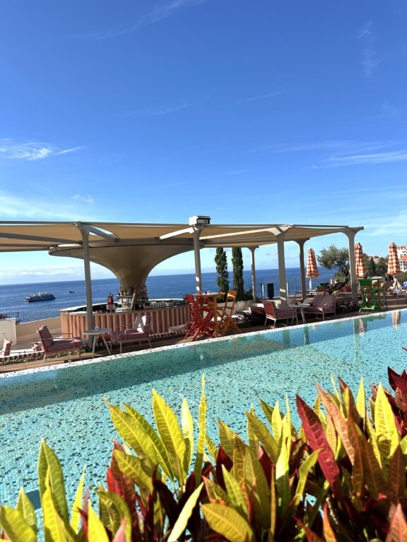 Varsinaisia hiekkarantoja Madeiralla ei juurikaan ole, mutta hotelliltamme pääsi pulahtamaan rappuja pitkin myös Altantin tyrskyihin.