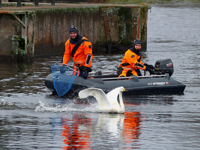 Tovin kuluttua paikalle saapui Karo Hult Pirkanmaan eläinsuojeluyhdistyksestä, hänet oli Tampereelta hälytetty noutamaan rannalla makaavaa kuollutta lintua. Seuraavaksi saapui Pirkanmaan pelastuslaitoksen henkilökuntaa Vammalasta veneen kera, veneellä lähdettiin noutamaan padolla olevaa joutsenta. Lintu pakeni luonnollisesti, eikä sitä saatu isoon Pelastuslaitoksen haaviin, mutta rannalle päädyttyään se pääsi Karon rauhoittelevaan syliin ja siitä lopulta autoon.