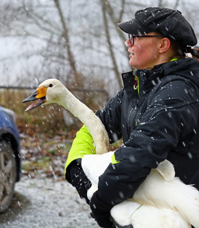 Autoon päätyi myös silminnähden heikossa kunnossa oleva toinen lintu rannalta. Lintua noutamaan tullut Karo Hult oli varautunut saamansa puhelinsoiton mukaan vain yhden linnun pelastusoperaatioon ja oli liikkeellä pienellä henkilöautolla. Jotenkin sinne molemmat linnut kuitenkin mahtuivat. Myöhemmin selvinnee onko kyseessä lintuinfluenssa vai jokin muu syy.