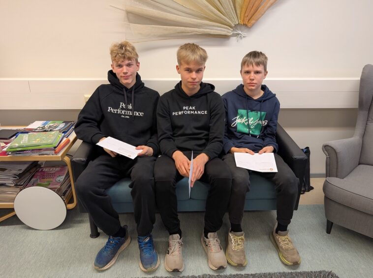 Palkitut olivat tällä kertaa kaikki 8. luokkalaisia: 1) Eero Talvio, 2) Kaarlo Karaus ja 3) Kasperi Kivioja.