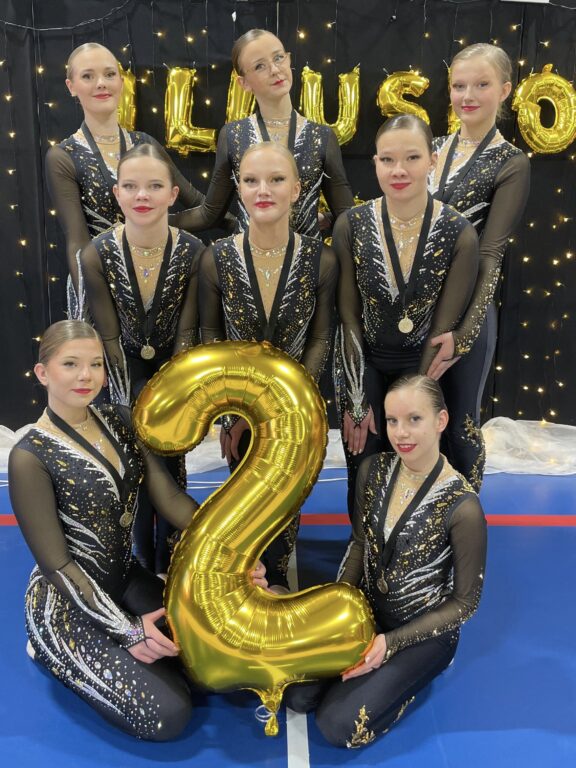 Vammalan Naisvoimistelijoiden Avalyn-joukkue kilpaili lauantaina 29.11. Illusion Cupissa Laukaassa 12-14 -vuotiaiden harrastesarjassa. Kategorian kaksi pisteillä 15.500 ansaittiin kilpailun toinen sija ja hopeinen mitali. Kisassa oli mukana yhteensä 12 joukkuetta.