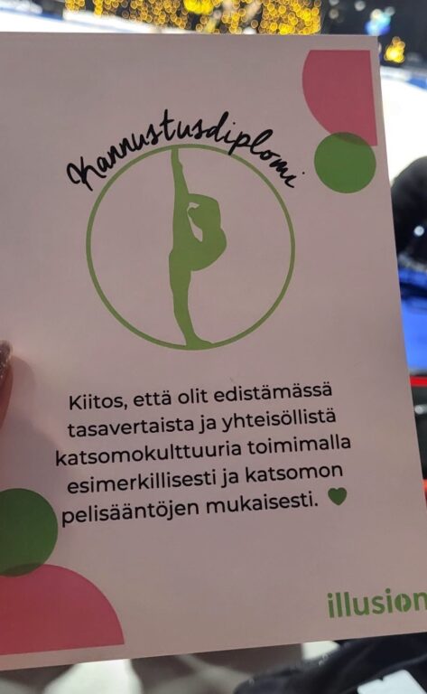 Joukkueen tukijoukot saivat kannustusdiplomin.