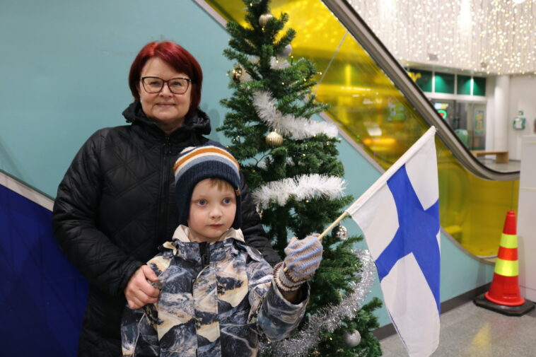 Suvi Tiensuu oli liikkeellä Suomen lippua liehuttavan Benjamin-pojan kanssa.