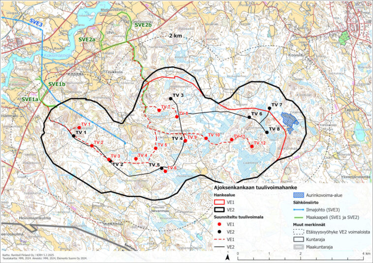 Ei ole ihme, että Ajoksenkankaan tuulivoimahanke herättää keskustelua ja kiinnostusta – sillä mistään aivan pienestä alueesta ei ole kysymys. Maa-alaltaan Ylistenjärven ja valtatie 12 välissä sijaitseva hankealue on noin 2000 hehtaarin kokoinen.