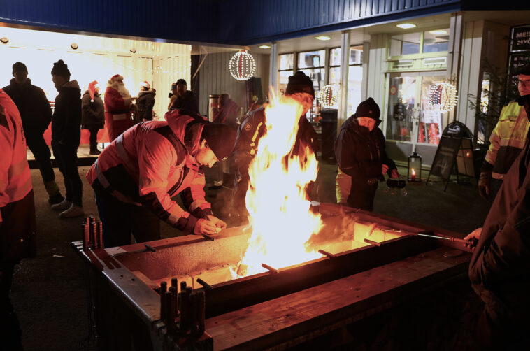 Jätkänkynttilöiden savut ja tuoksut toivottivat tervetulleeksi liikkeen pihaan, jossa makkaraa grillattiin avotulilla. Valaistuja ajoneuvoja kaasutteli pihan kokoontumispaikalle koko ajan lisää. Viiden jälkeen illalla pihassa olikin kymmenittäin koreita, monen kokoisia autoja, traktoreita, moottoripyöriäkin ja katepillarikin valmiina starttaamaan kaduille.