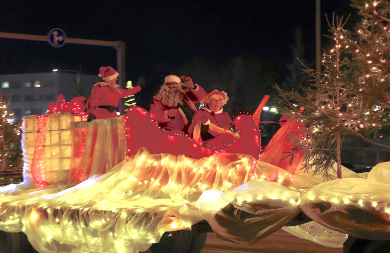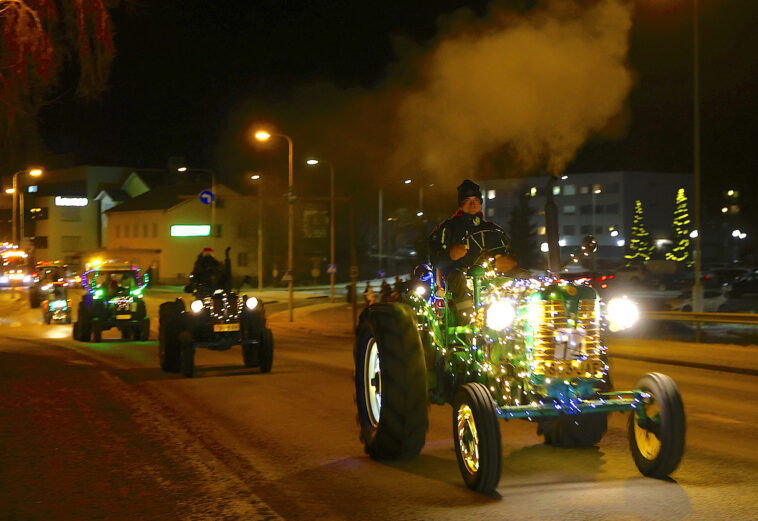 Sairaalan risteyksen liikennevalot aiheuttivat hieman katkoja valaistujen ajoneuvojen letkan kulkuun. Ihmisiä katujen varsilla oli runsaasti, ei ihan niin paljoa kuin keväisen vappupäivän vanhojen ajoneuvojen paraatin aikaan. Ensi vuonna sekin ennätys kenties rikotaan, jos ja kun tämä jouluinen tapahtuma uusitaan. Miksi ei uusittaisi, kaikki tuntuivat pitävän tapahtuman hengestä.