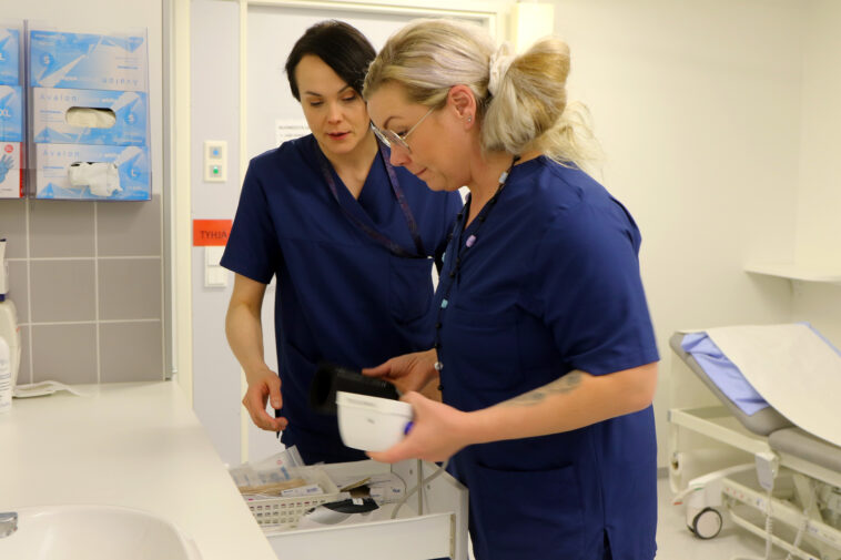 Sairaanhoitajat Mervi Hölttä (takana) ja Viivi Ketonen painottavat, että kaikki hoidon jatkuvuutta edistävät ratkaisut ovat hoidon parhaaksi, lisäävät asiakaslähtöisyyttä ja helpottavat työtä ammattilaisten näkökulmasta.