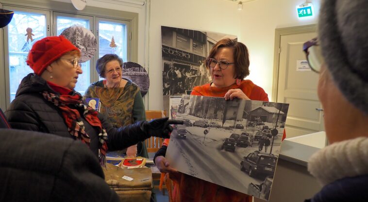 Sastamalan seudun museossa oli esillä vanhoja valokuvia. Mitä kummallista tässä kuvassa on, kysyttiin vierailta. Apuna museolla häärivät Tyrvään kotiseutuyhdistyksen aktiivinaiset.