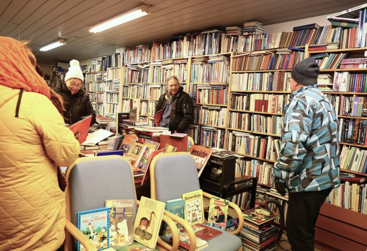 Antikvariaatti Tyrwäässä ovet olivat perjantaina auki klo 20 asti. Omistaja Jokke Mäkinen tietää kirjoista lähes kaiken. Tulipa illan mittaan vastaan kuitenkin sellainenkin kirjatoive, että Joken piti netistä tarkistaa, että yhtään kysyttyä Petroskoissa painettua seppäalan teosta ei Suomen antikvariaateissa myynnissä ollut.