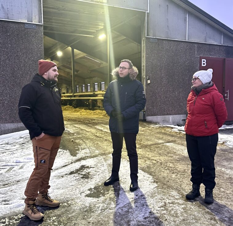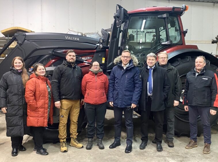 Huittisten Vampulassa sijaitsevan Matintalon Sonni Oy:n pihamaalla odotellaan ministeritason vieraita, sillä tila on yksi työministeri Matias Marttisen päivän vierailukohteista. Paikalla ovat tilan yrittäjäpariskunta Reija ja Mikko Matintalo, sekä Jyri Matintalo.