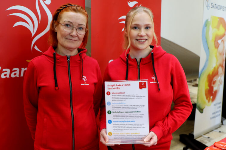 ”Mediassa on puhuttu paljon siitä, että työnhakijoiden määrä on lisääntynyt. Se näkyy sekä täällä tänään että myös ihan selvästi työhakemusten määrässä”, Anne Hakala ja Ronja Kokko Saarioisilta kertovat.
