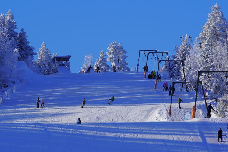 Ilma lämpenee totutusti iltapäivää kohden, ennen kun tulipallo taivaalla laskee hiljalleen metsän tai horisontin taa. Mittari laskettelukeskuksen huoltorakennuksen seinässä rinteiden alapuolella näyttää -10 astetta. Lapsia vanhempineen on paikalla runsaasti, taitaa olla monelle jopa ihannekeli.