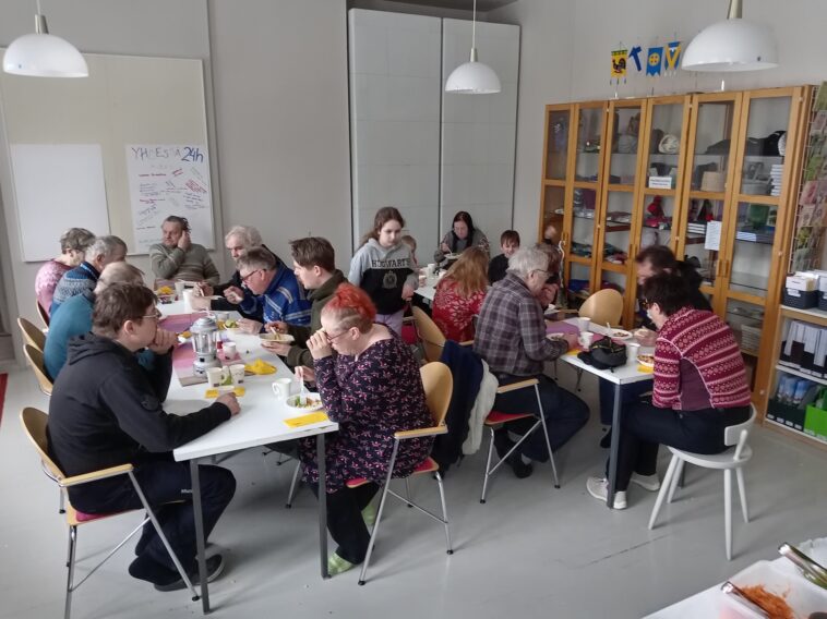 Varsinainen Yhdessä24 alkoi klo 13 aloituskokouksella, jossa Leena Virri-Hanhijärvi ja hanketyöntekijä Taru Aronen kertoivat tapahtuman kulusta. Piirissä istui yli 20 osallistujaa ja tapahtumasta kiinnostunutta, ja jokainen vuorollaan esitteli itsensä kertoen nimensä lisäksi jonkin mukavan asian.