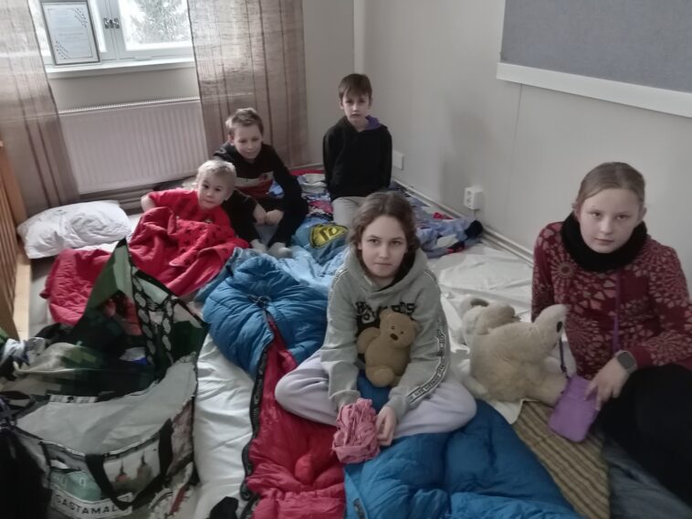 Lantula-talolle oli hommattu kymmenkunta retkisänkyä Kiikan VPK:lta.