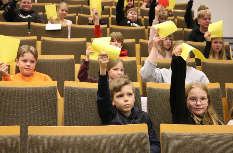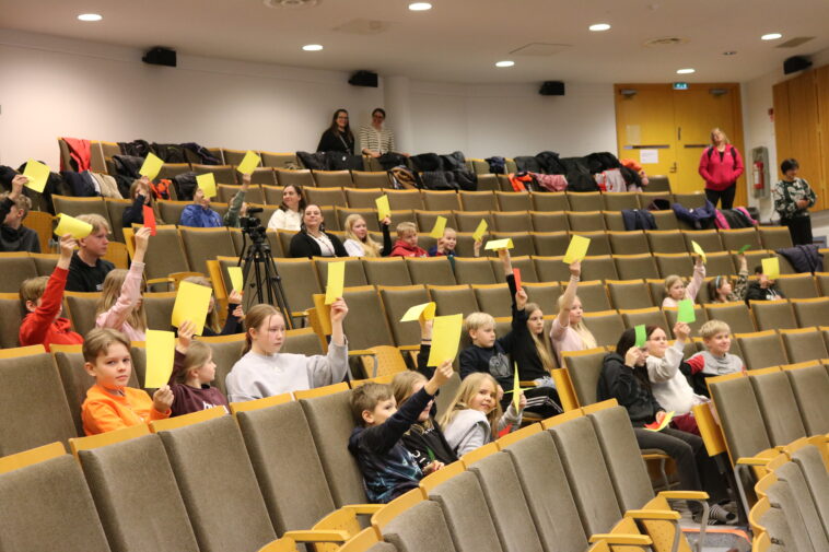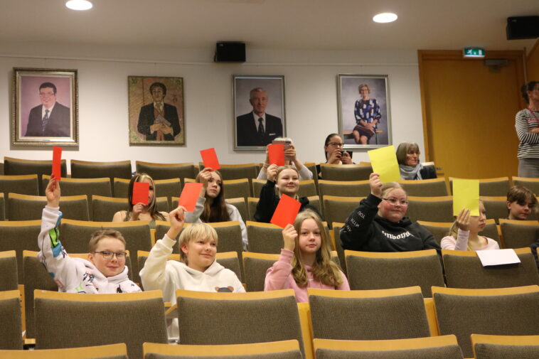 “Rennosti tulette tänne lavalle ja hoidatte homman, niin se on oikein hyvä”, kannusti nuorisovaltuuston ja kokouksen puheenjohtaja Iiro Palaja oppilaita.