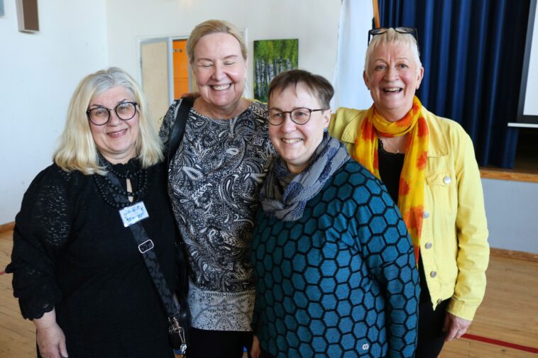 Heli Tala, Tuula Aarinen, Heli Vinha ja Marja Putti iloitsivat jälleennäkemisestä.