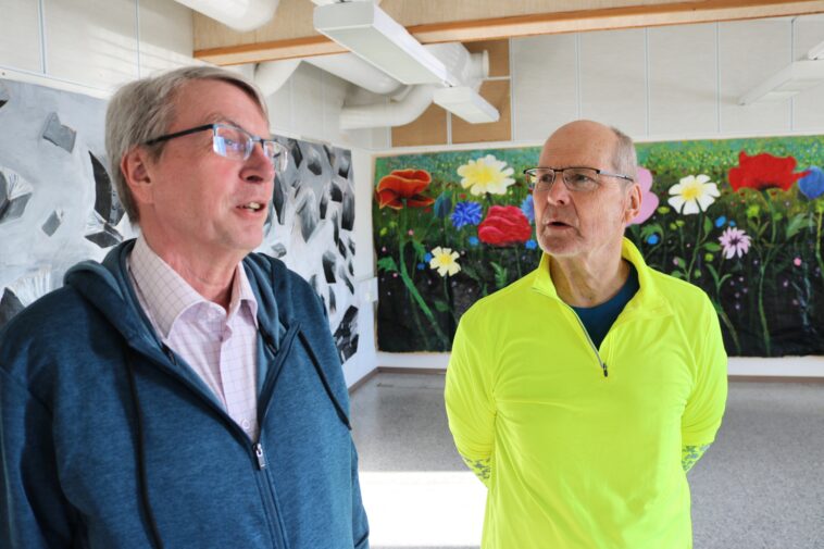 Markku Pärssinen ja Tapani Haapasalo verestivät koulumuistojaan. Useissa luokkahuoneissa saattoi myös ihailla koulun oppilaiden tekemää taidetta.